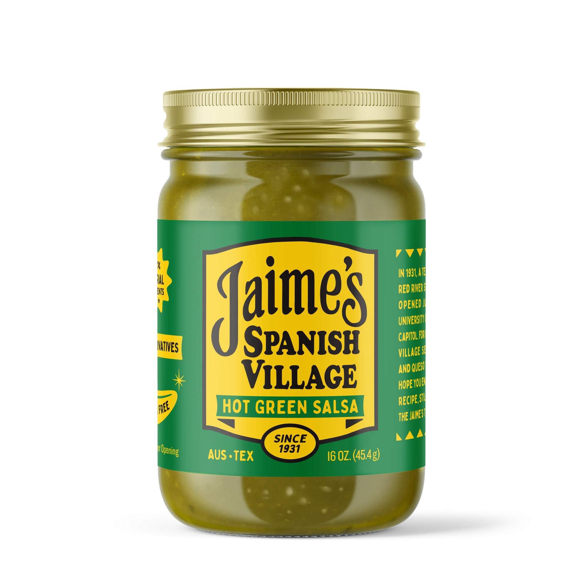 Our tangy, award-winning HOT GREEN SALSA is a favorite for both dipping and cooking. Each batch is handcrafted using Chef Gonzalo’s recipe from 1931. The traditional, spicy flavor comes from the fresh jalapeños and cilantro added to each and every jar. Our customers put it on everything, from enchiladas to macaroni and cheese. We are happy to officially take the honor of BEST TASTING GREEN SAUCE from the Austin Hot Sauce Festival. This is the same sauce served over the green enchiladas at Jaime’s Spanish Village Restaurant for almost 80 years. The tradition lives on.